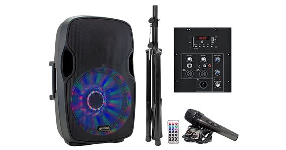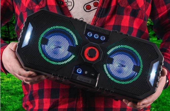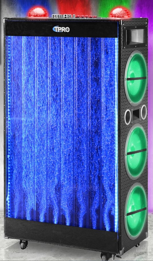 This is one of those speakers you have to see in person to believe. There is actually water in the front portion of the speaker and 8 jet streams pump the water creating a waterfall effect. You will definitely be the talk of the party with this speaker system! It has 10,000 watts of peak power and LED changing lights. It has two handles and durable coaster wheels for easy transportation and mobility.