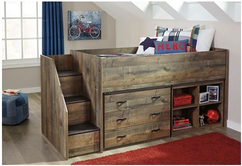 Shop this youth set here: https://www.gomajik.com/trinell-twin-loft-bed-with-left-storage-stairs-bookcase-and-drawer-storage-3381