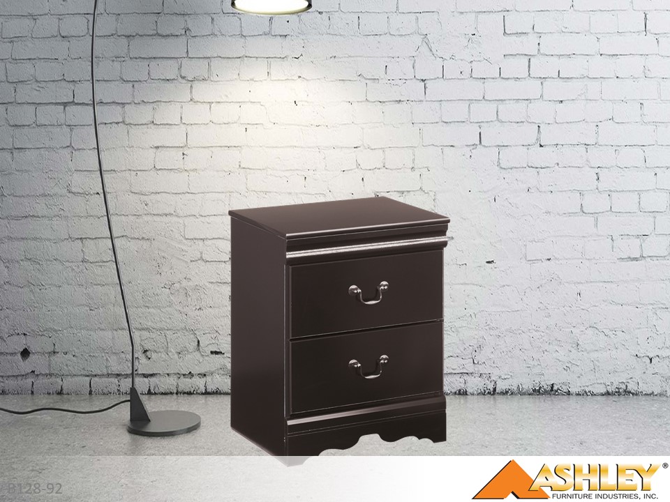 A timeless and elegant addition, the Ashley Huey Vineyard Nightstand - Black (2 Drawer) [Model B128-92] offers classic style with practical storage for your bedroom. Its sleek black finish and sophisticated design complement a variety of décor themes, from traditional to modern. With two smooth-gliding drawers, this nightstand provides convenient space for essentials while adding a refined touch to your sleeping space.