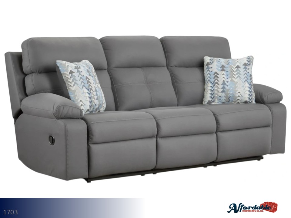 The Ashley Stoneland Motion Sofa - Fossil [Model 39905-88] delivers big-time comfort with a rugged, family-friendly look. Draped in a supple fossil-gray faux leather with a high-grain hand, this motion sofa pairs contrast jumbo stitching with bustle backs and plush pillow-top arms for a cozy, tailored profile. Its smooth reclining mechanisms let you kick back effortlessly, while the durable upholstery wipes clean to keep your living room looking sharp day after day.